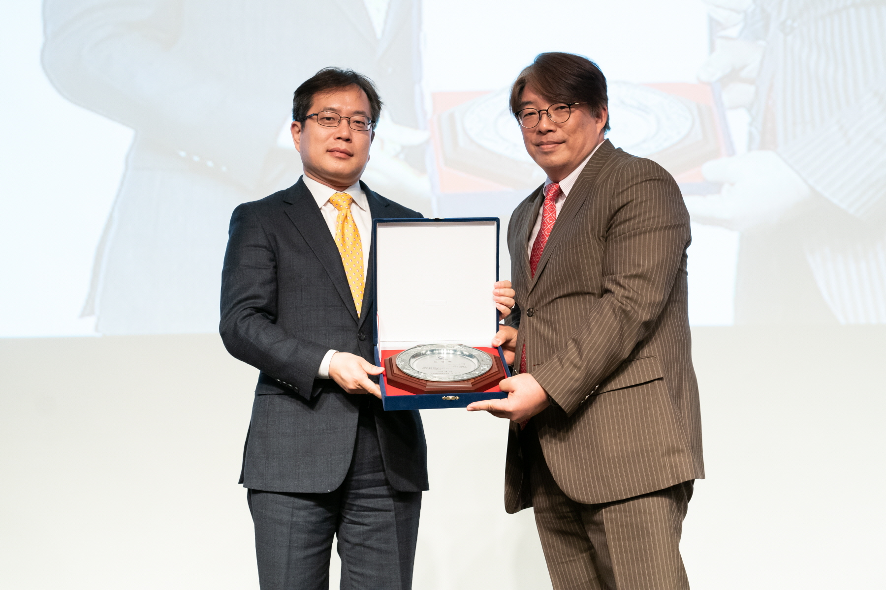 ▲ 배하석 이대목동병원 재활의학과 교수가 문화체육관광부 장관 표창을 받은 후 강정원 문화체육관광부 체육국장과 기념 촬영을 하고 있다.