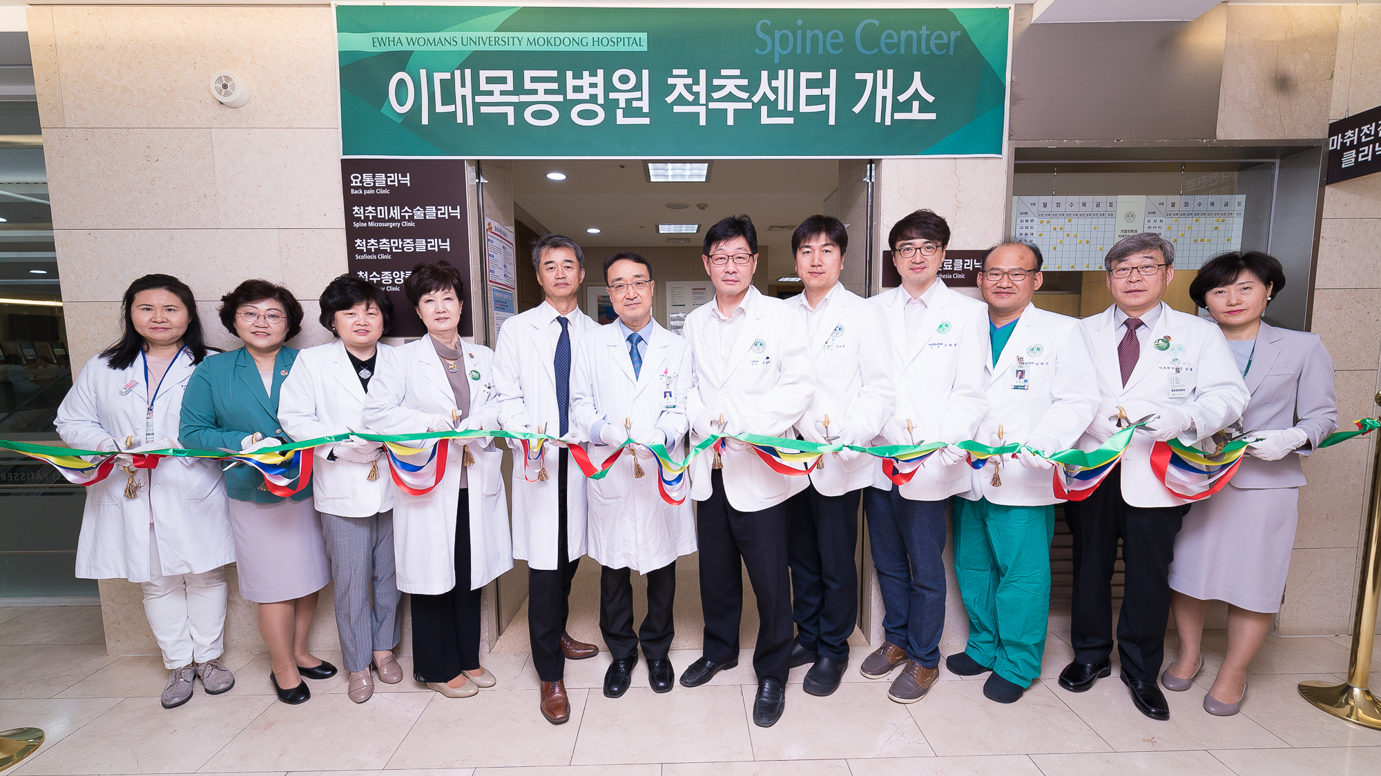 이대목동병원은 4월 12일, 김승철 이화의료원장, 유경하 이대목동병원장, 박은애 기획조정실장 등 경영진과 고영도 척추센터장을 비롯한 김동준, 조용재, 조도상, 박학수, 황지영, 김원중 교수 등 척추센터 의료진이 참석한 가운데 척추센터 개소식을 진행했다.