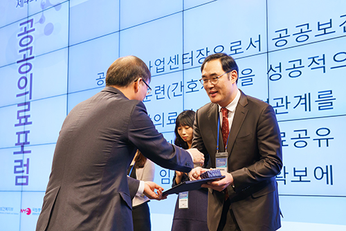 주웅 센터장은 지난 4년간 이대목동병원 공공의료사업센터를 이끌면서 전국 39개 지역 거점 공공의료기관 종사자들의 임상 실무역량을 높임으로써 공공부문 의료 발전에 기여한 공적을 인정받아 공공의료기관을 제외한 민간 의료기관에선 유일하게 보건복지부 장관상 수상의 영예를 안았다.
