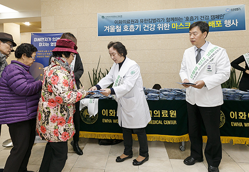 최근 큰 추위에 미세먼지 농도가 높은 날이 지속되는 가운데, 이화여자대학교 의료원(의료원장 심봉석, 이하 이화의료원)이 11월 29일 이대목동병원 1층 로비에서 유한킴벌리와 함께 병원 방문객을 대상으로 겨울철 호흡기 건강을 지키기 위한 다양한 행사를 개최했다.