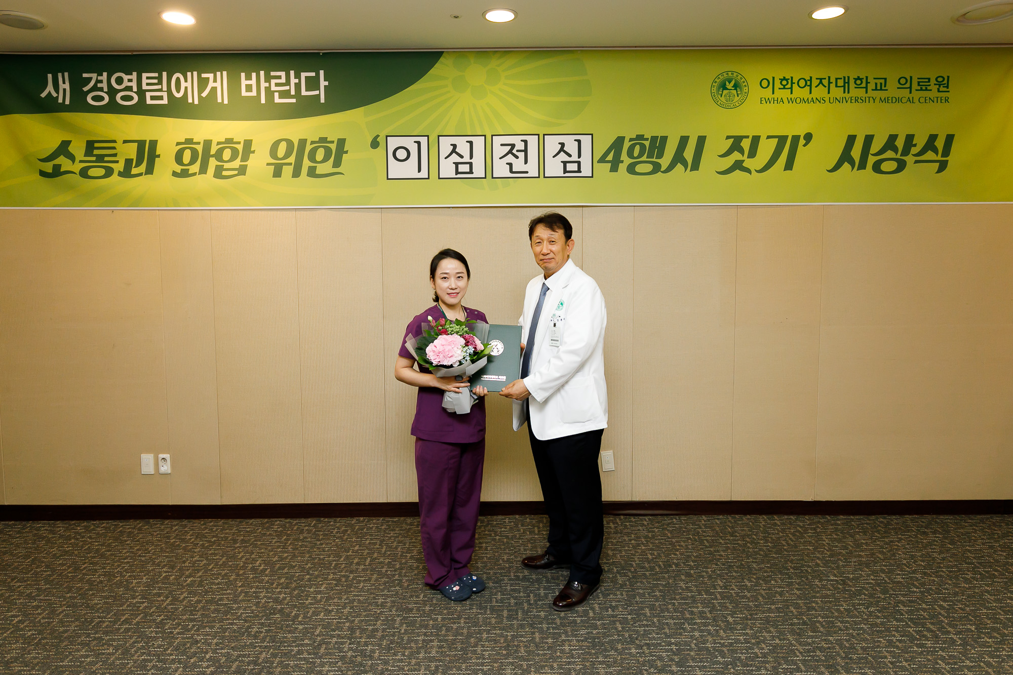 한편, 지난 8월 31일 이대여성암병원 다목적실에서 개최된 시상식에는 심봉석 의료원장, 정혜원 병원장, 이령아 기획조정실장, 김태헌 진료부원장, 변은경 간호부원장 등 경영 팀들과 김미희 간호사 등 수상자들이 참석했다.