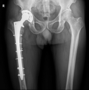 기존 인공관절을 이용해 시술한 고관절 엑스레이 사진 |