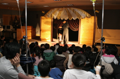 이대목동병원(병원장 서현숙)은 지난 12월 15일 오후 2시 2층 대회의실에서 어린이 환자 및 지역 어린이들을 위한 목각인형 콘서트를 개최해 많은 호응을 받았다. 한국와이어스에서 후원한 이번 콘서트는 마리오네트라는 깜찍한 목각인형들이 등장 노래하고 춤추며 재롱으로 병마에 시달리는 어린이들을 멋진 동심의 세계로 안내했다. 한편 이날 콘서트에는 지역의 어린이들과 병원에 입원중인 어린이 100여명과 보호자들이 참석해 목각인형 친구들의 공연을 즐겼다. 특히 이날 공연에 이어 요술 풍선과 여러가지 선물도 전해져 투병중인 어린이들에게 즐겁고 기쁜 하루를 선물했다. |