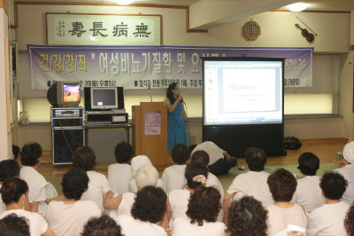 이대목동병원(원장 서현숙)은 지난 7월 20일 오후 3시 강서구 원적외선 찜질방 ‘녹주’에서 건강강좌를 개최했다. 비뇨기과 윤하나 교수의 ‘요실금과 방광염’이라는 주제로 진행된 이날 강좌에는 평소 찜질방을 이용하는 지역주민 250여명이 모여 이대목동병원의 ‘찾아가는 건강강좌’에 높은 관심을 보였다. ‘찾아가는 건강강좌’는 평소 지역의 주민들이 많이 이용하는 대중시설을 직접 찾아가 평소 올바른 건강정보도 전하고 자기 몸에 관심을 가질 수 있도록 주의를 환기시키기 위해 개설되었으며 이날 세번째 강좌를 개최했다. ‘요실금과 방광염’이라는 주제가 찜질방을 주로 이용하는 중년여성 이용객의 대다수가 관심을 갖는 주제여서 강좌가 끝난 후 관련된 질문을 하는 등 좋은 반응을 얻었다. 한편 이대목동병원은 지난 5월부터 지역주민들의 호응속에 ‘찾아가는 건강강좌’를 주제를 달리해 매월 정기적으로 개최해오고 있다.