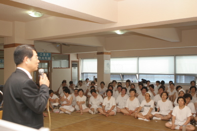 이대목동병원(원장 서현숙)은 지난 5월 24일 오후 2시 강서구 원적외선 찜질방 ‘녹주’에서 건강강좌를 개최했다. 가정의학과 이상화 교수가 ‘건강관리’라는 주제로 진행된 이날 강좌에는 평소 찜질방을 이용하는 지역주민 250여명이 모여 이대목동병원의 ‘찾아가는 건강강좌’에 높은 관심을 보였다. ‘찾아가는 건강강좌’는 평소 지역의 주민들이 많이 이용하는 대중시설을 직접 찾아가 평소 올바른 건강정보도 전하고 자기 몸에 관심을 가질 수 있도록 주의를 환기시키기 위해 개설되었으며 이날 첫 강좌를 개최했다. 이대병원은 ‘찾아가는 건강강좌’를 주제를 달리해 정기적으로 개최할 예정이다. |